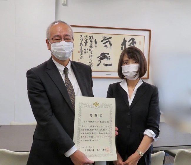 グループ会社のNKIと共に医療従事者用の手袋10万枚を大阪府に寄付いたしました。