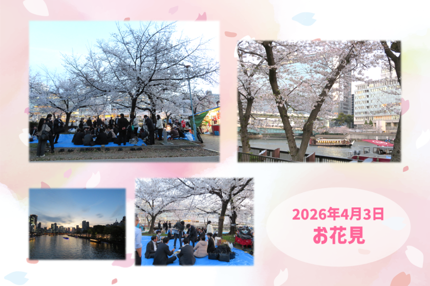 2026年4月3日、南天満公園で新入社員歓迎を兼ねたお花見を開催し、各部署・事業所から約60名が参加しました。夕方からのスタートであったため、ほんのり肌寒さを感じるなかではありましたが、満開の桜と晴天に恵まれ、会場は華やかな雰囲気に包まれました。