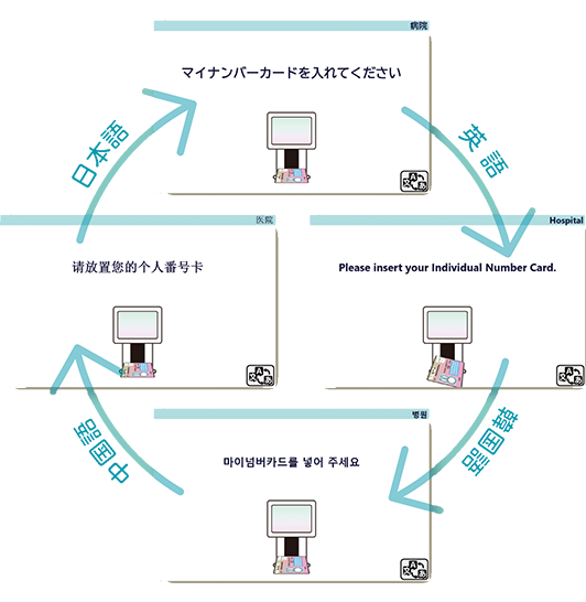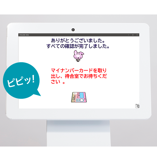 ⑧ EXC-9000 のタッチパネルに待ち受け画面が表示されたら、マイナンバーカードをセットし、顔認証による資格確認ができるか確認してください。